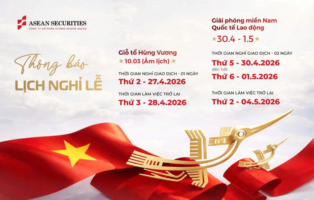 Công ty Cổ phần Chứng khoán ASEAN (ASEAN Securities) trân trọng thông báo lịch nghỉ lễ nhân dịp Giỗ Tổ Hùng Vương và Ngày Chiến thắng 30/04 – Quốc tế Lao động 01/05 năm 2026 như sau: