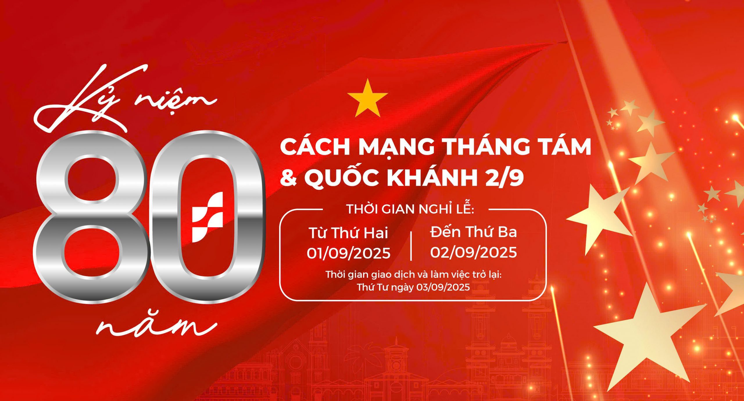 Công ty Cổ phần Chứng khoán ASEAN xin trân trọng thông báo lịch nghỉ lễ đến Quý khách nhân dịp kỷ niệm Quốc khánh 02/9/2025 như sau: